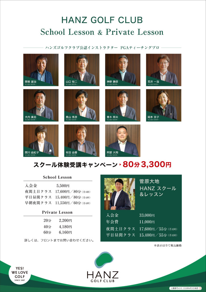 横浜を拠点に知る人ぞ知る『カリスマレッスンプロ』。その総生徒数は1800名を超え、 レッスンは常にキャンセル待ちの状態が続いている。そのモットーは『プロの目線ではアマチュアゴルファーは成功しない!』であり、 スクール生からは数多くのクラブチャンピオンを輩出している。
